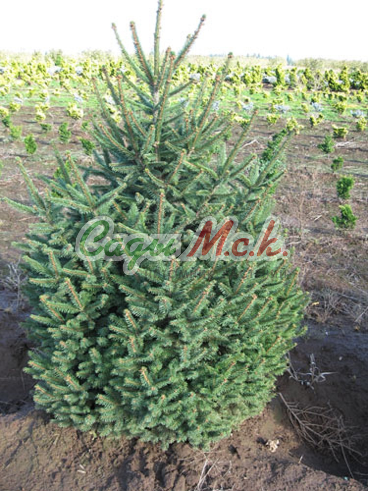 Медленнорастущее, декоративное деревце дает в год прирост около 15 см. Тем не менее, к 10 годам достигает 2 м в высоту, диаметр кроны – около 1 м. Крупномер колючий Bialobok особенно привлекателен весной, когда отрастают молодые побеги, покрытые лимонными, светло-салатовыми иголками, контрастирующими с темно-зеленой старой хвоей. Крона плотная, неправильной формы. Саженец предпочитает открытые, солнечные участки или полутень. Деревце используется в одиночных посадках.